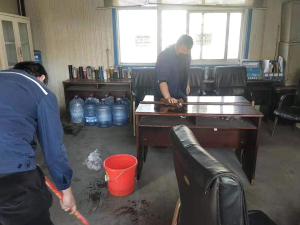 相比小王,已经在安宁安家的小段选择了坚守岗位。过年期间由于仓库发货量的减少,他趁着装车的间隙,拿着杀菌剂喷壶在空无一人的装车站台上默默的进行着消杀工作。装车站台作业者不单有叉车工和仓管员,还有装卸工和驾驶员,过往人员复杂,是分厂防疫工作的重点区域,并且,次氯酸钠呛鼻的气味也让消杀工作困难重重。