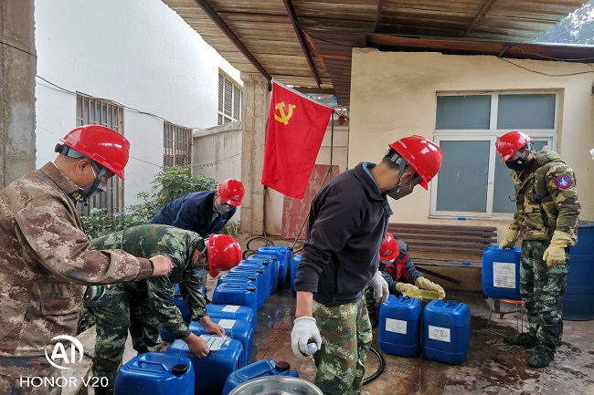 彼时,矿部向广大职工发放口罩和消毒酒精,尤其向生产一线倾斜;后勤服务中心坚守门岗,将发热人员和不佩戴口罩人员阻挡在外;消防队配制次氯酸杀菌剂按需分发各部门开展现场杀菌;食堂加大病毒消杀力度保障员工三餐卫生安全,并坚决杜绝人员聚集用餐……。昆明盐矿全体干部员工形成五位一体全方位全天候疫情防控体系,稳步推进落实各项疫情防控措施,截至目前,昆明盐矿没有发生一起卫生安全事故风险。