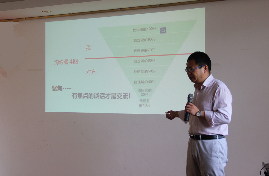 沟通是人与人之间传递信息、传播思想、传达情感的过程,正确的人际沟通和健康的心理,是我们生活与工作中重要的内容之一。讲堂上,来松海老师从人际交往的概述、为什么沟通不畅、沟通能力提升、职场沟通理念等几个方面进行了深入浅出的讲解,同时又结合现实生活列举了大量生动的事例为大家传授了许多人际沟通方面的重要知识,让员工们听后都深受启发,受益匪浅,得到大家的强烈共鸣和广泛好评。