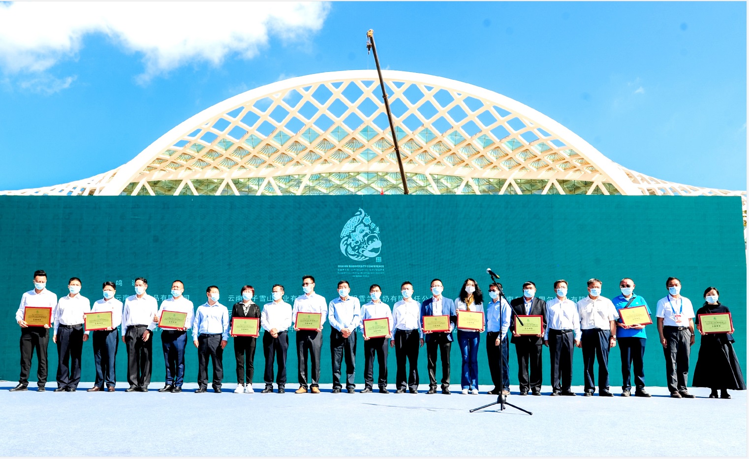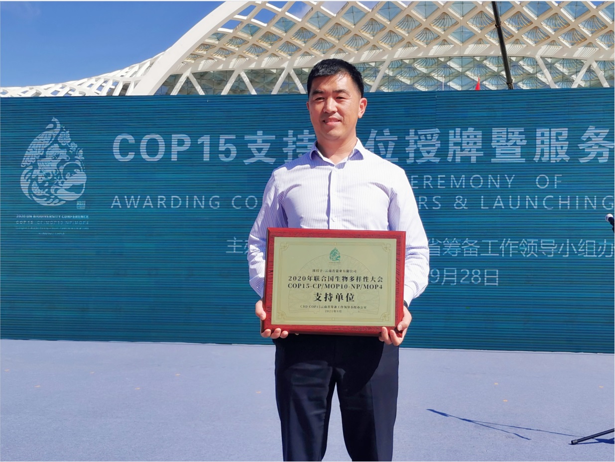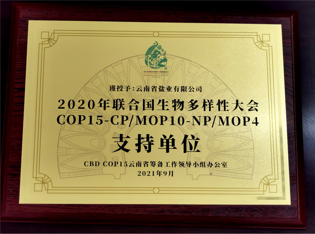 市场管理部 报道 9月28日,联合国《生物多样性公约》第十五次缔约方COP15大会云南省筹备办在滇池国际会展中心举办COP15合作单位授牌仪式。云南能源投资股份有限公司总经理杨建军代表云南盐业接牌。亚娱平台客服副总经理李中照及相关部门负责人参加仪式。
