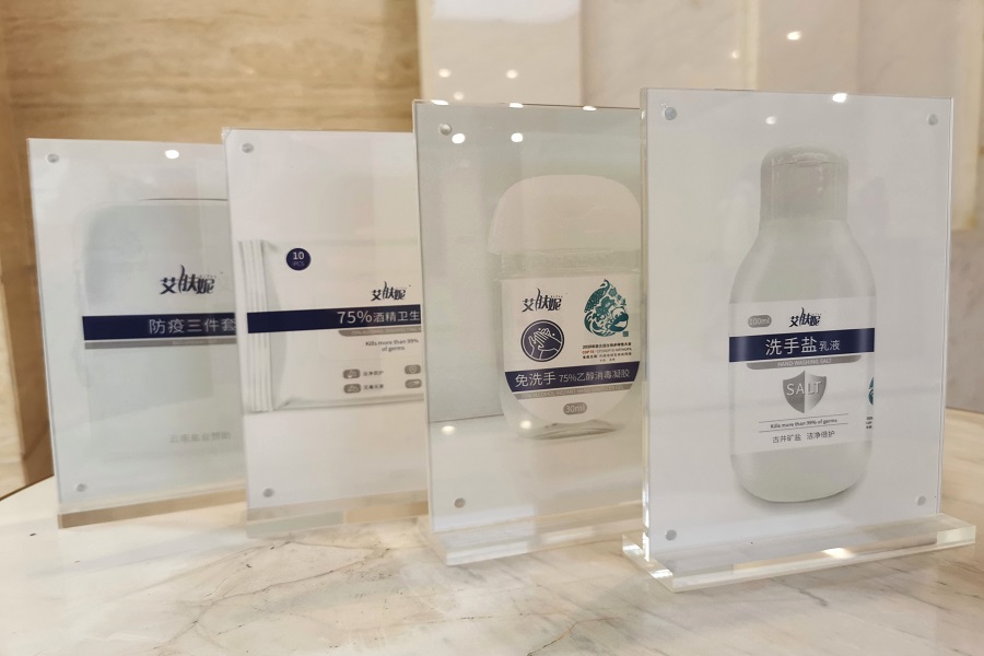 云南盐业作为省属国有企业及我省“绿色食品牌”的重要组成部分,高度重视COP15赞助物资工作。在时间紧任务重的情况下,云南盐业统一目标和工作要求,全力协调各方资源,科学统筹人、机、场、车、货,从原材料、包装包材、产品规格、质量检验、生产组织、物流运输等环节制定针对性保障措施,在一个半月内,圆满完成了产品的生产组织及交付。同时,根据筹委会疫情防控要求,云南盐业还为会议定制了艾肤妮牌抑菌三件套(75%酒精湿巾、免洗手75%乙醇消毒凝胶、洗手盐乳液),以供参会嘉宾及志愿者使用。(栗萌子欣)