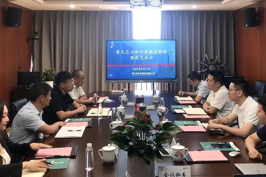 为进一步加强盐行业交流沟通,实现互利共赢,8月12日,云南能源投资股份有限公司党委副书记、总经理杨建军一行七人到访湖南省轻工盐业集团有限公司、雪天盐业集团股份有限公司。湖南省轻工盐业集团有限公司党委书记、董事长冯传良,党委委员、副总经理陈伟,雪天盐业集团股份有限公司党委书记、总经理王哈滨及相关部室负责人参加座谈。