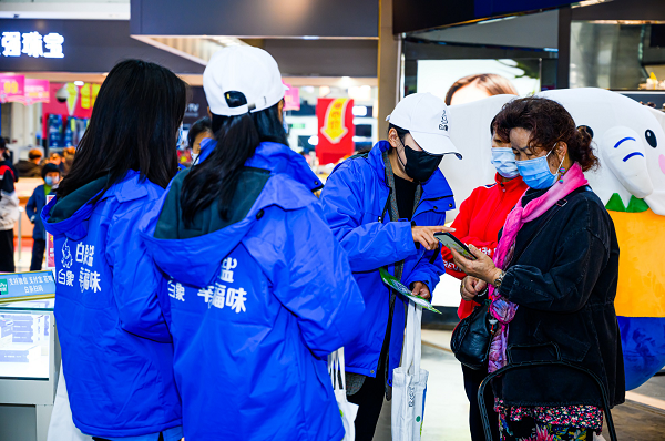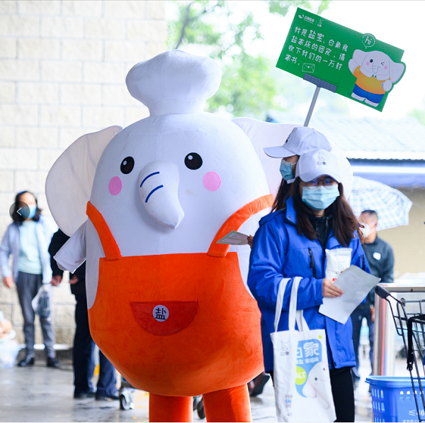 “白象”全新品牌IP形象——盐宝,凭借其憨厚可爱的形象,一经面世就受到消费者的喜爱和追捧。在刚刚过去的“五.一”假期,盐宝爬西山,游茶马花街,去蓝花楹大道打卡网红景点,在园西路品尝各色美食,与消费者进行近距离的沟通和交流。为配合本次新装上市的市场活动,盐宝还带领公司志愿者走上街头,在沃尔玛、公园1903等商圈为消费者发放家书。消费者通过关注“云南盐业”微信订阅号,完成简单的问卷调查,即可领取一份新装上市“家书大礼包”,抢先品尝“白象”第三代包装的“明星产品”——磨黑贡晶盐和磨黑钙盐,还能收获盐宝同款周边玩偶。